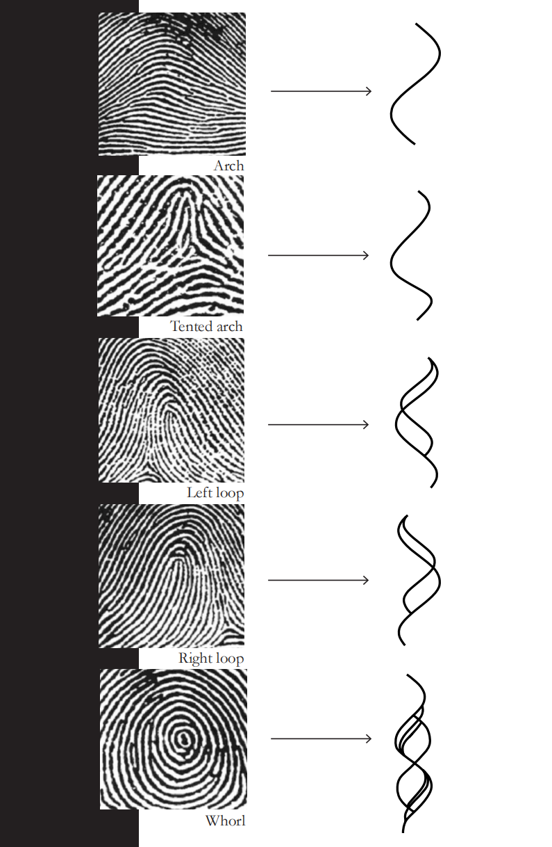 According to the research, although a person’s fingerprints are unique, it is still divided into five styles: Arch, tented arch, left loop, right loop and whorl which listed on the left side.