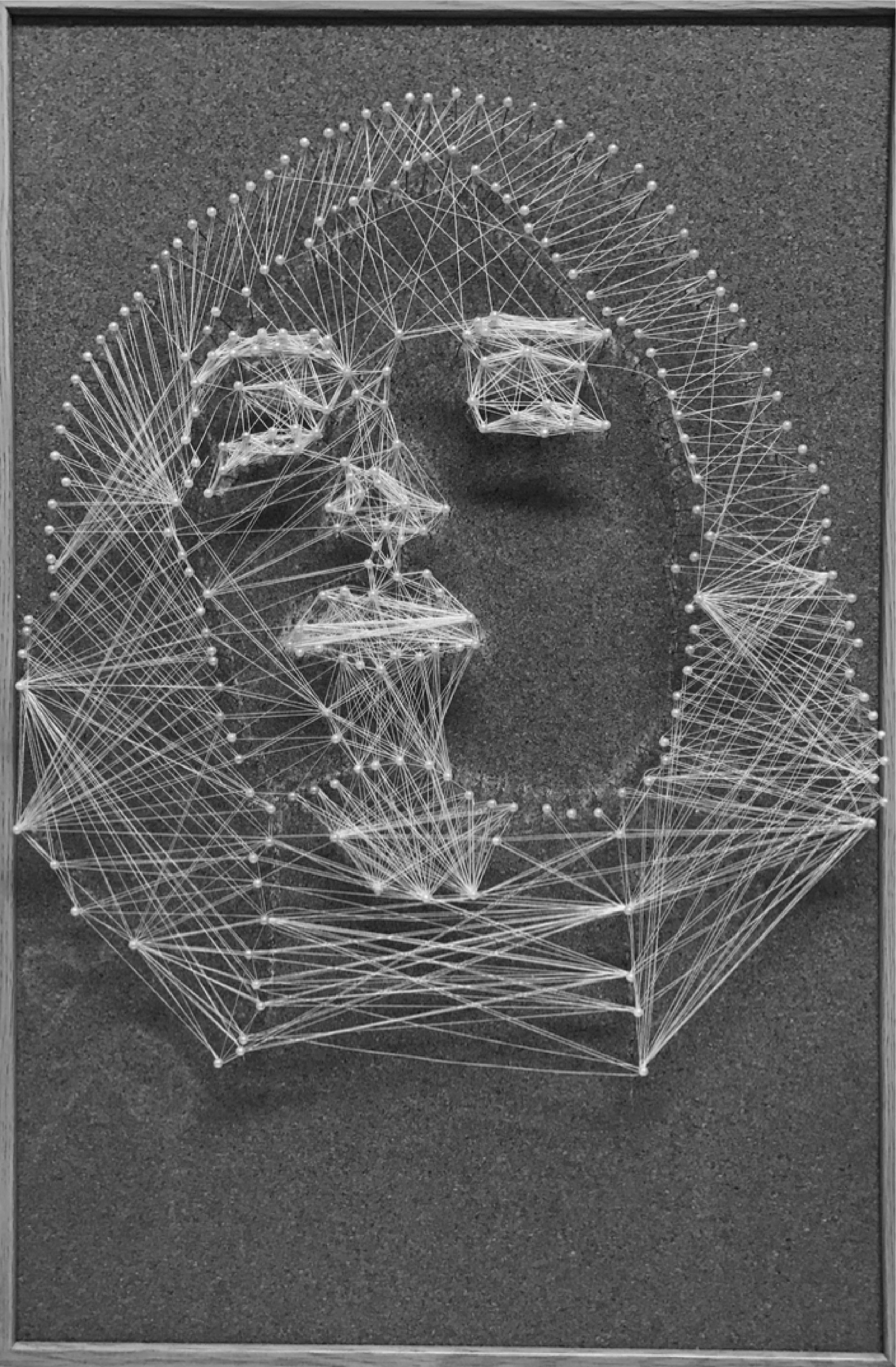 This work used pins and strings to form a 3D protrait of my mom when she was young in a abstract way, created with points, lines and panels.